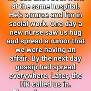 A father–daughter hug between two hospital coworkers was misinterpreted by a colleague as inappropriate, sparking gossip and a rumor about an alleged affair. The misunderstanding escalated, leading to an HR investigation, confusion, and an unexpected lesson about communication, assumptions, and professionalism in the workplace.